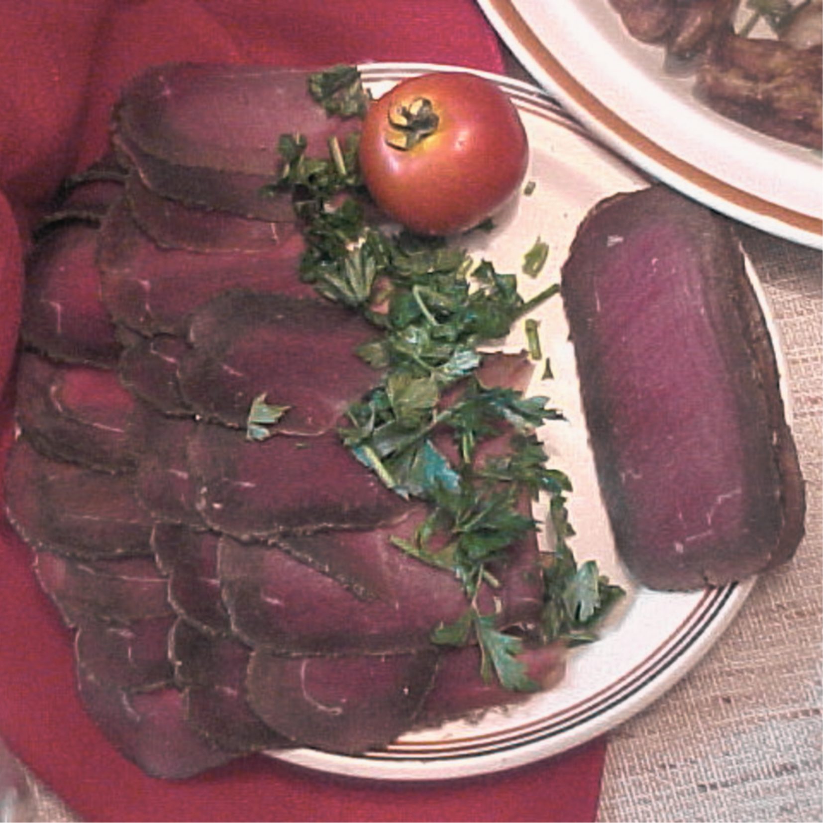 A masterpiece of Armenian curing. Our basterma is unlike any other—air-dried beef coated in a signature crust of garlic, paprika, and the essential tchaman. We recommend enjoying it AS IS to fully appreciate its complex, savory depth.
